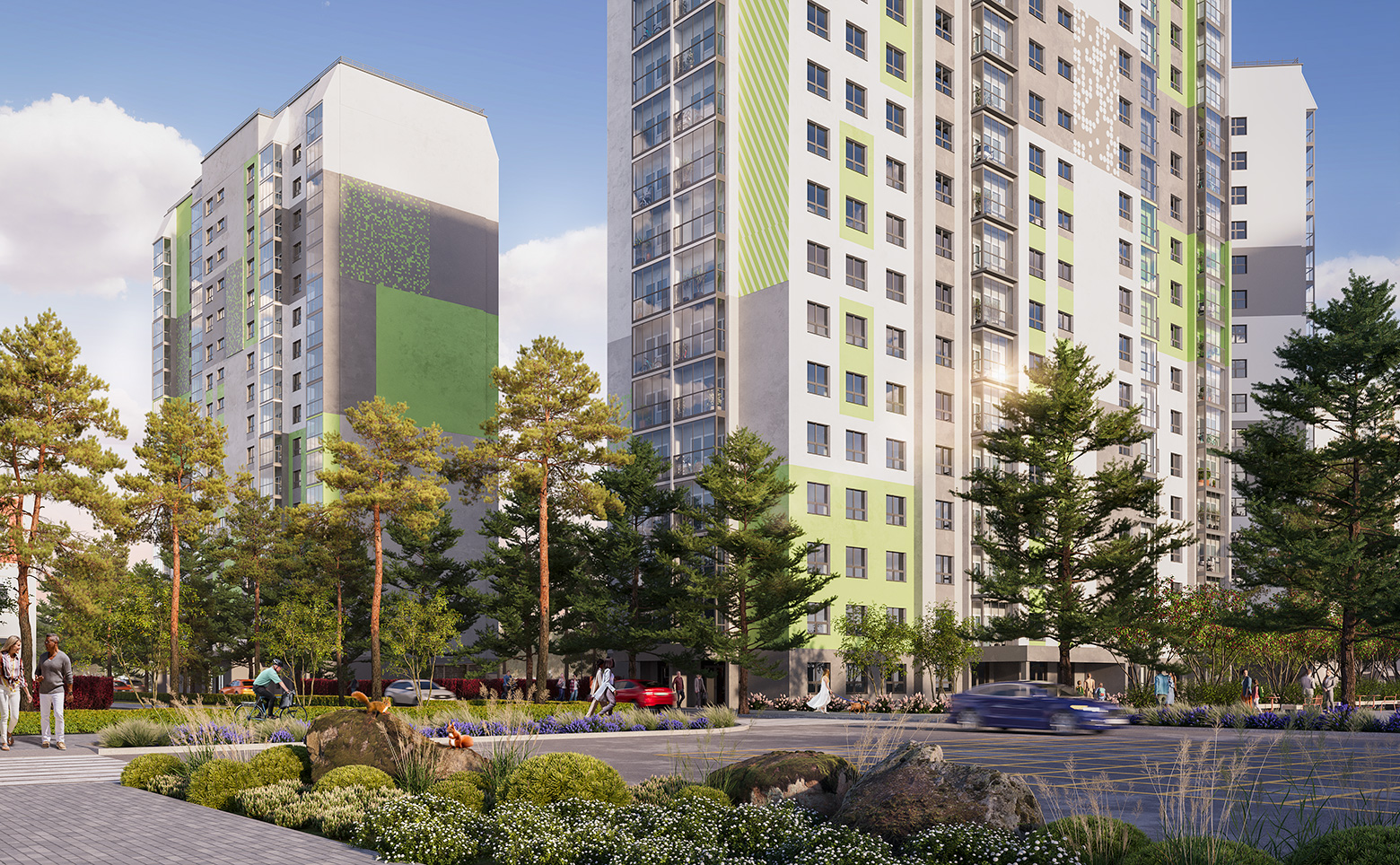 Парки, скверы, зоны для спорта и прогулок — всё для комфортной жизни семей с детьми.