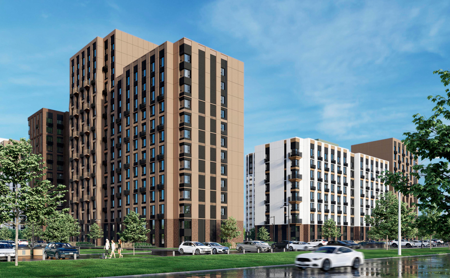 - Описание: жилой комплекс с акцентом на функциональность и комфорт, дворы с игровыми и спортивными зонами.